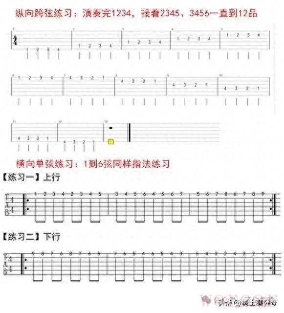 - 练习变化:可以纵向跨弦练习(如从1234品移到2345品),也可以横向单弦练习(在同一根弦上移动)。