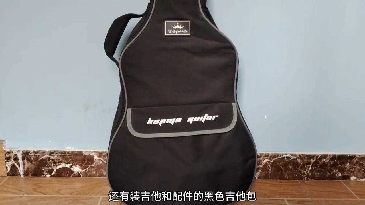 摆放在桌上的就是送的所有的配件了,有一套琴弦、吉他谱、背带、擦拭布、拨片、调音器、六角螺丝刀,当然还有装吉他和配件的黑色吉他包,平时可以背着出去,非常方便。下面依次打开看看每个配件。