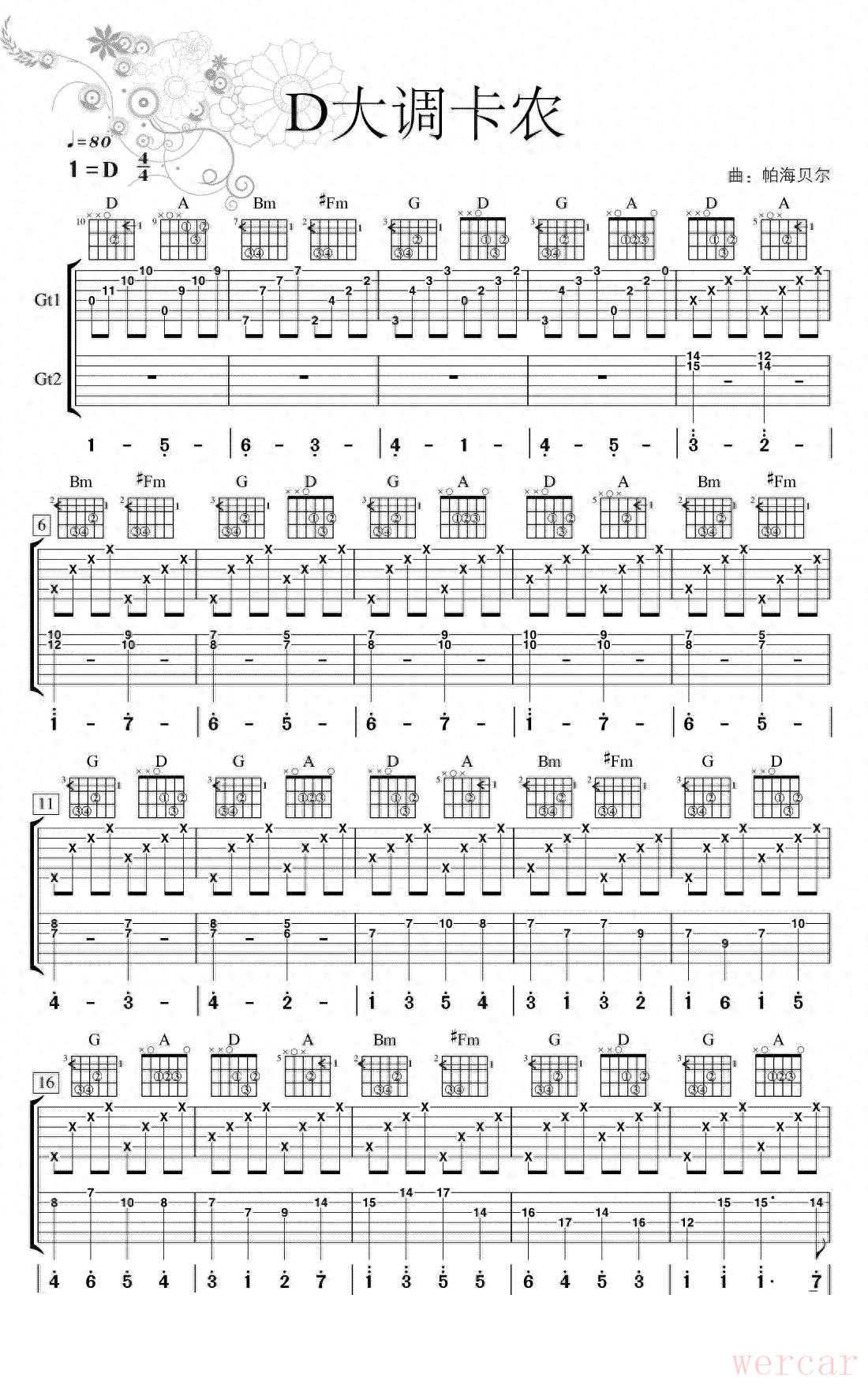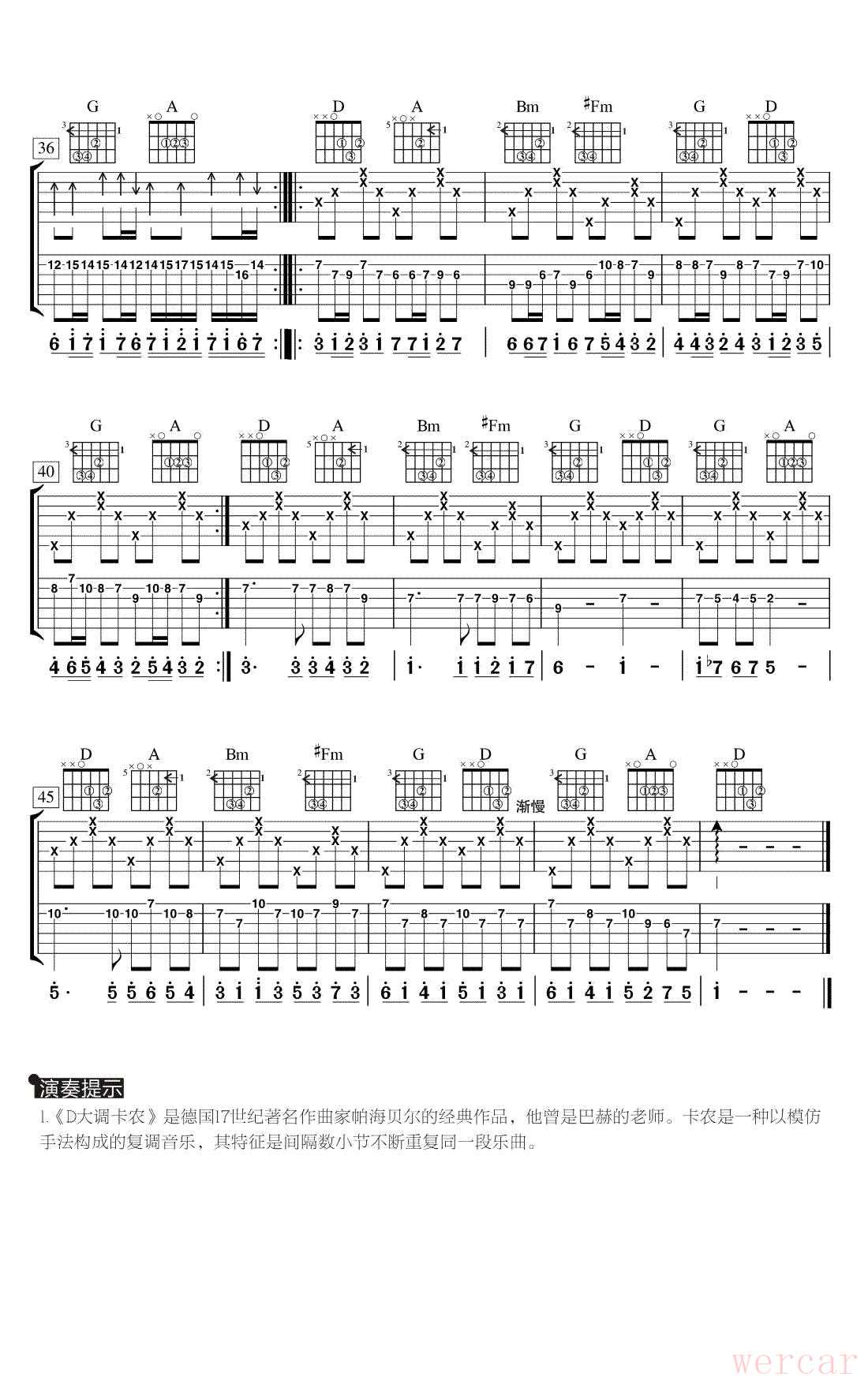 D大调卡农指弹吉他谱大公开!双吉他合奏版演绎经典