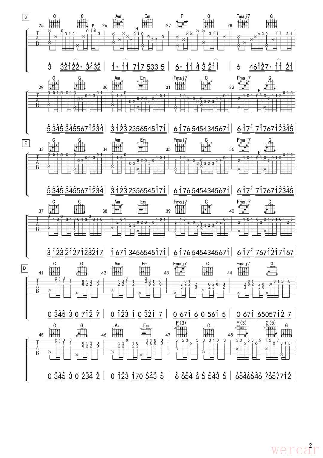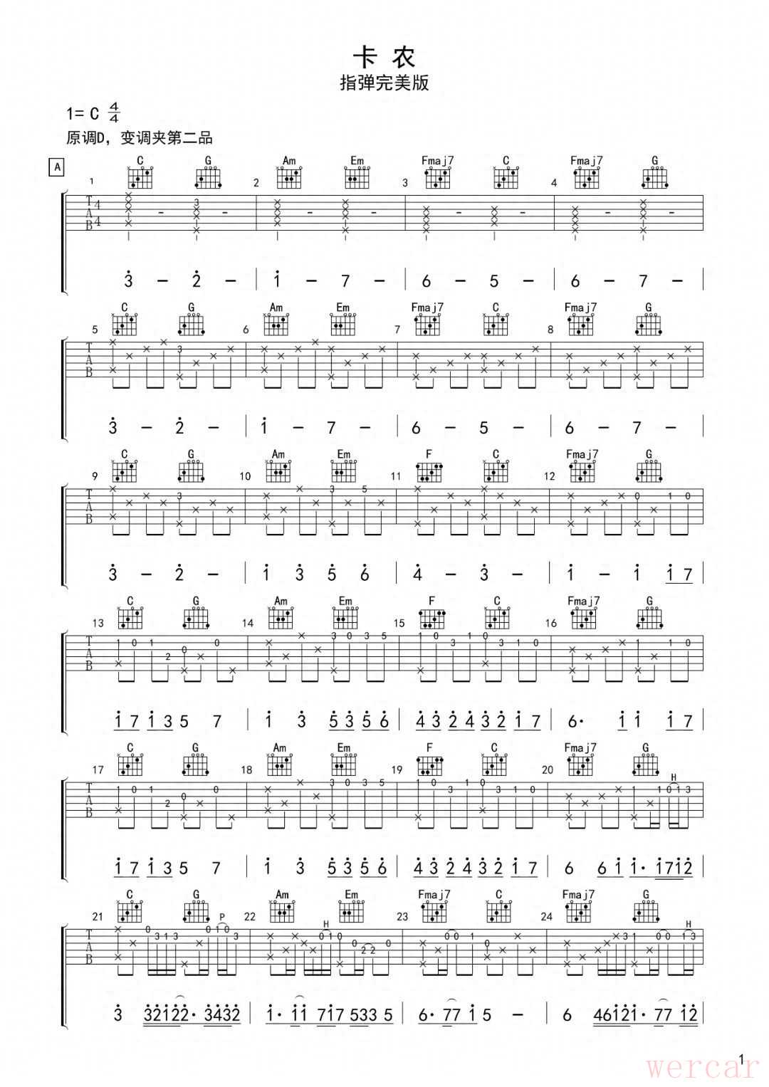 卡农吉他指弹乐谱大放送,C调版卡农精彩分享