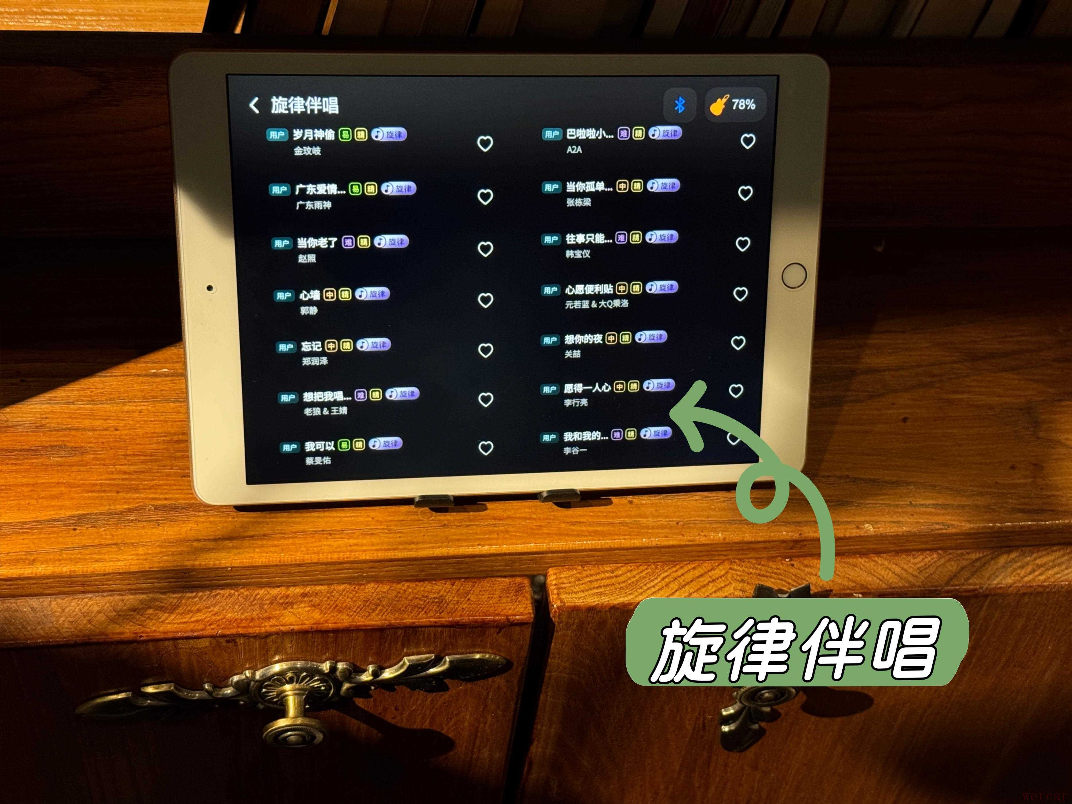 简单的歌能弹唱了,我就想试试难度大的歌,我有不少喜欢的歌曲,都是调比较难找的,我就打开了有弦自动挡里的旋律伴唱。打开以后,旋律变得和原曲很接近,找调相当方便,我很轻松就唱出来了,也不会说磕磕绊绊的,旋律伴唱曲库也蛮多的,我喜欢的歌曲里面几乎都能找到。