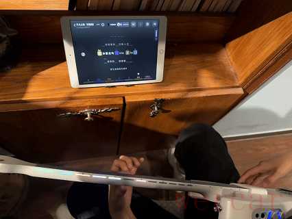 开启弹唱的时候,APP上会按照节奏,把需要弹的位置用色块标注上,色块的颜色和填充节奏,与琴颈侧面的指示灯是一致的,眼睛看着屏幕色块,左手顺着指示灯去按品,加上右手拨弦,舒缓旋律简简单单就能从指尖流淌出来,和玩音游一样简单,而且琴弦和手指的触感也让人觉得很治愈,就这么弹唱十分钟,我得到的疗愈,可比窝在沙发上刷手机多多了。工作完再刷手机,总是越刷脑子越昏沉,但用这把吉他来弹奏却是沉浸式充能,弹唱的那一瞬间人确确实实有被放空,满脑子里只剩下旋律和歌词,弹唱完以后脑子变得很清爽,精神也放松了,再开工的时候思路也会更清晰。