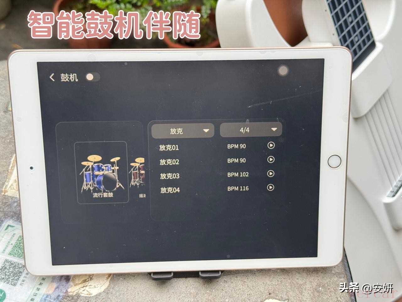 后面我还发现这把吉他居然是可以切换音色的,不仅可以出木吉他的声音,还可以钢琴声、贝斯音,总共有9种,点开APP吉他设置就可以任意挑。还有很多自动鼓机伴奏可以选,我每次就这么交错着玩,感觉一人就是五月天,是真玩不腻。