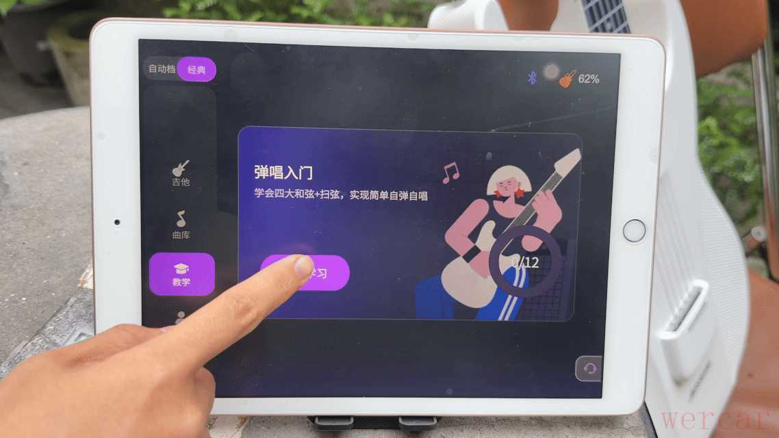 前面说的都是玩这方面的功能,刚开始接触这把吉他的时候,我也以为它只能用来玩,但实际拥有之后我发现,它居然还带有学的属性,专业模式下有21节零基础吉他系统教学课和半自动挡课程,能够真正用来学吉他,这下这把吉他就不仅是一个舒压产品,它更是有长期使用价值的实用好物,我自动挡玩得差不多了之后,就开始用它的教学功能来真正学吉他了,进度还挺快的。