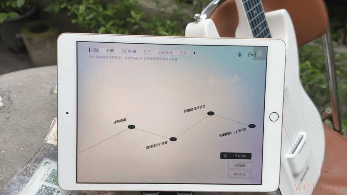 系统课程入门第一节是教拿琴姿势和发力方式,接着教怎么正确弹出声音、怎么扫弦,怎么按和弦,老师甚至还会对和弦作解释,让学的人更好记忆,比如他说Am和弦是略带伤感底色的,一下就让我记住它了。