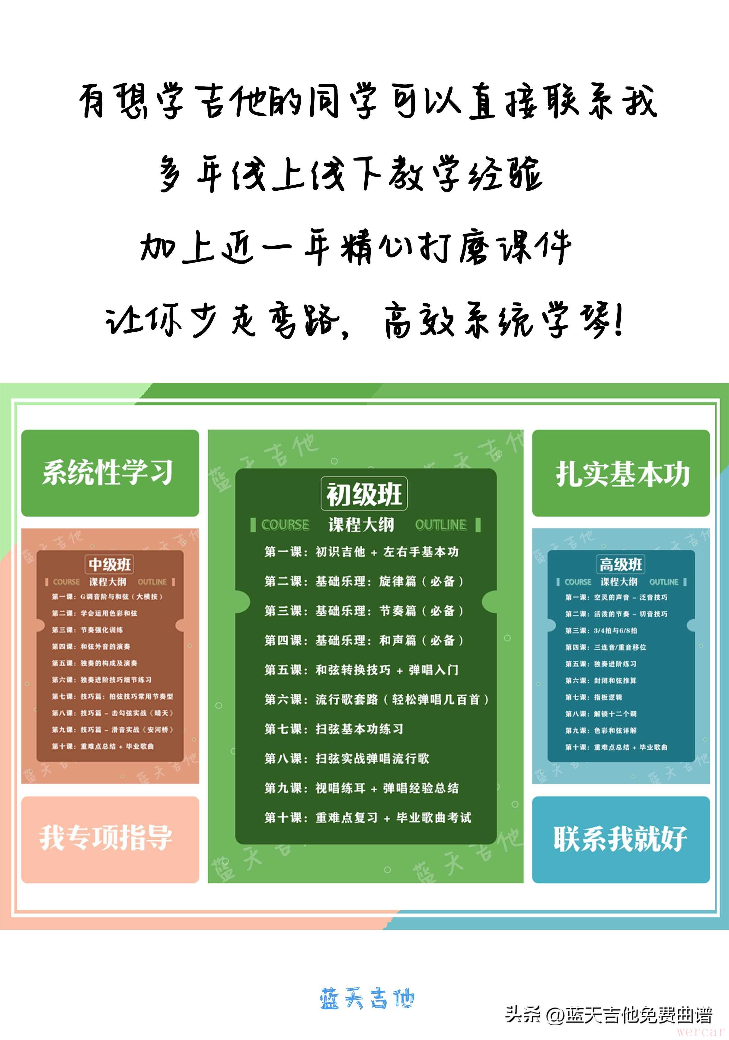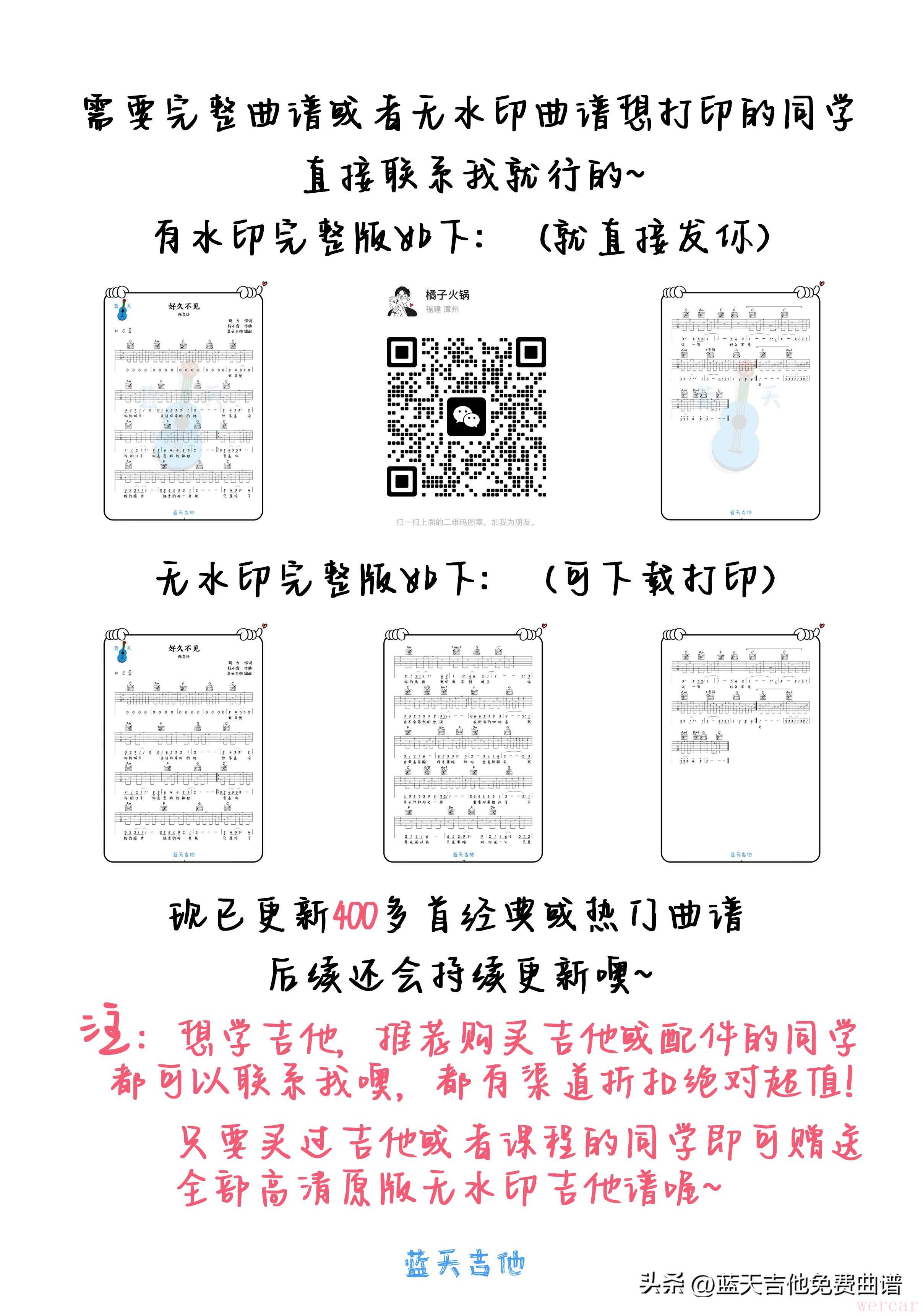 每日爆肝制作优质吉他谱, 更多优质曲谱高清原图尽在公众号【蓝天吉他】快去关注下载曲谱呀~想要学吉他,买吉他或配件的同学都可以联系我噢,渠道折扣超值优惠给你,凡是购买课程或者吉他的同学都可以免费赠送所有全部无水印高清原图噢~