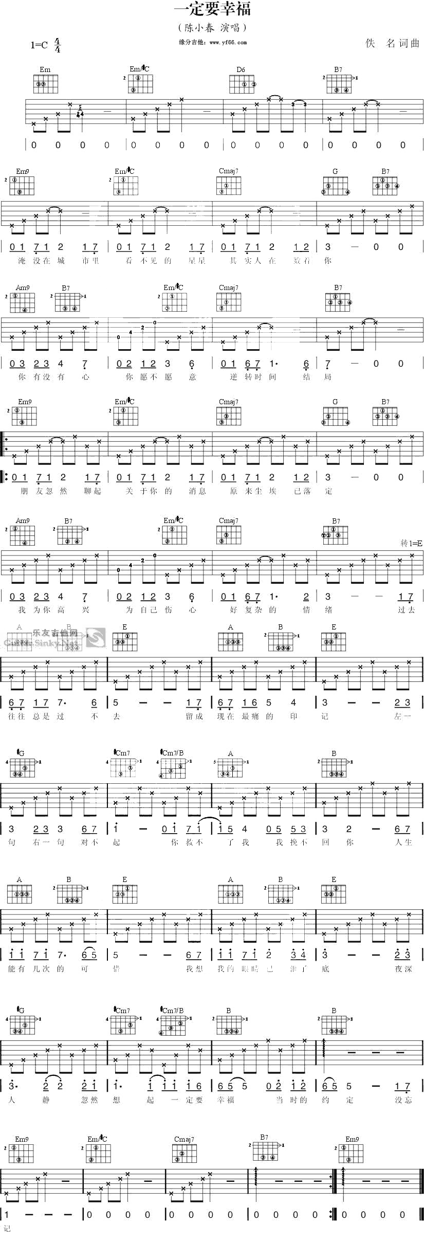 《一定要幸福》是陈小春的一首经典歌曲,吉他弹唱时需要注意以下问题: