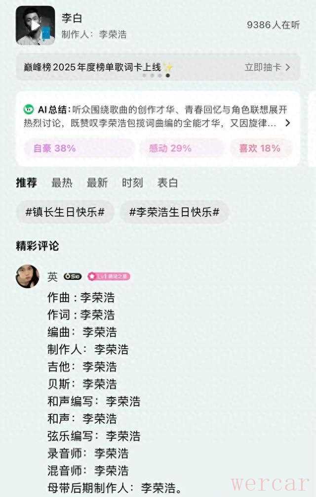 张亚东说他“逆行”,其实李荣浩只是按自己的表走。别人追流量,他追鼓组里那一点点松弛;别人把歌当消耗品,他把歌当耐用品,出厂前多砸几遍钉子,好让它九年不散架。于是《李白》成了华语乐坛的“长寿面”,隔一阵子就被翻出来,加点新葱、磕个新蛋,依然够味。数据只是结果,真正的底牌是那个最朴素的认知:好东西不用抢时间,时间反过来会替它撑腰。