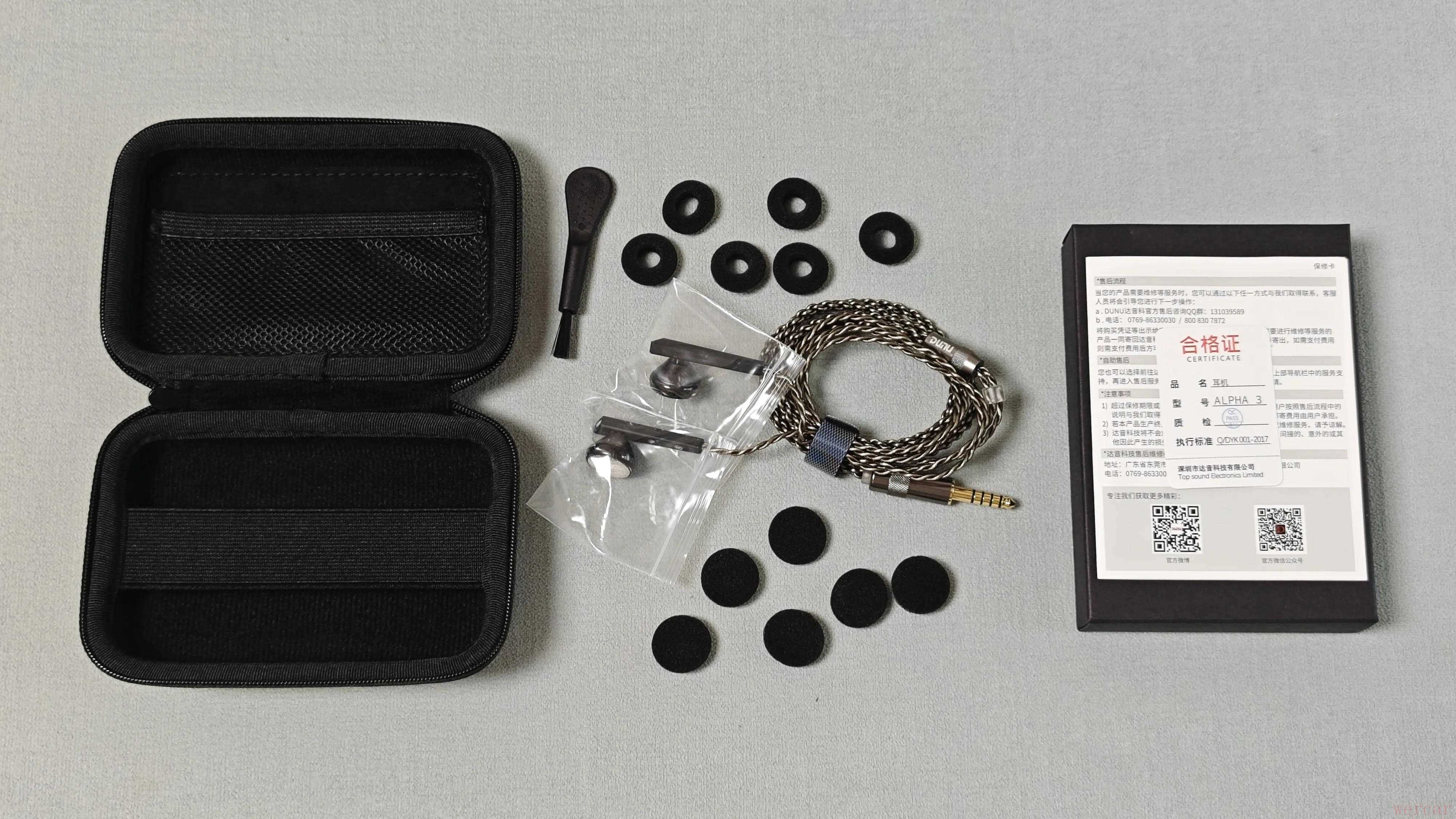 Alpha3的包装简单紧凑,耳机本体是直接放在附送的耳机包内的,从而节省了一些包装内的空间,随机附带了实心和中空海绵套各三对,我一般都是习惯用中空海绵套,如无特殊说明,所有平头塞的听感分享也都是基于中空海绵套的。