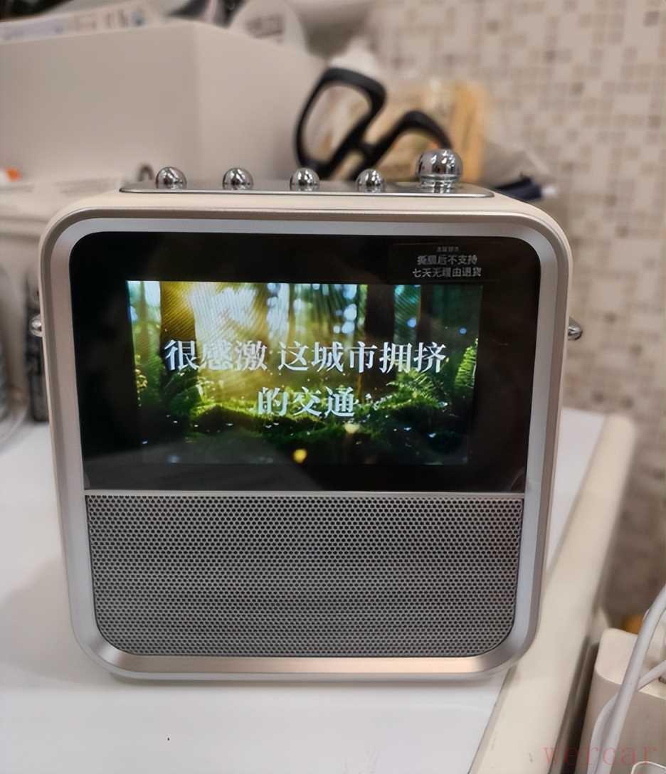 智能彩屏与 AI 语音助手: 作为金运首款触控歌词音箱,它搭载了 4.3 寸的高清触控彩屏 。在户外播放时,屏幕能显示动态歌词,并提供多种歌词动效和背景,让你看见音乐里的故事 。内置了小度智能助手,下载 APP 即可使用,支持 AI 语音点歌,老人小孩在户外动动嘴就能切歌 。