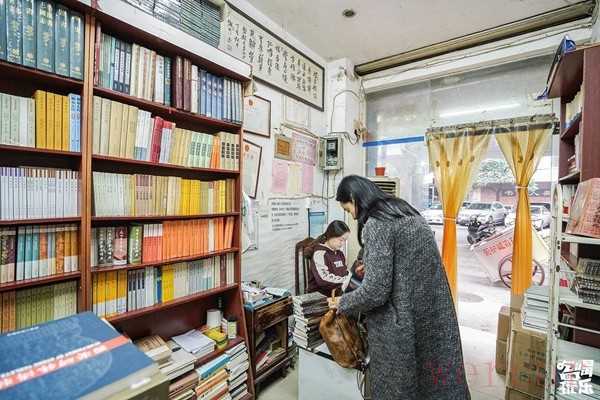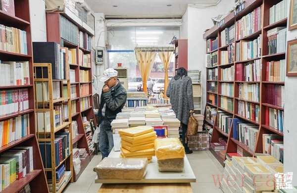 几盏简单的日光灯,靠墙两长排满满当当的书架,店中间码着厚厚的书墙,留出两条狭长的过道刚够转身,就构成了这个书店的全部。