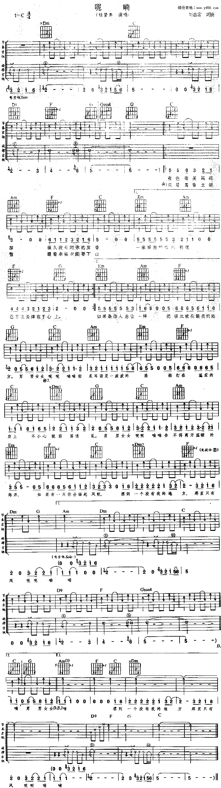 任贤齐的《呢喃》是一首非常受欢迎的歌曲,吉他弹唱时需要注意以下几个问题: