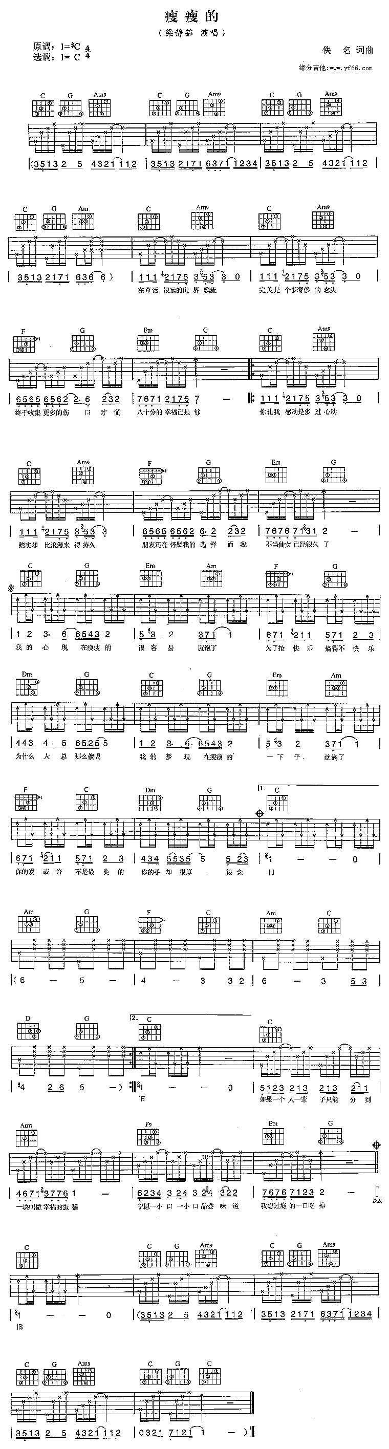 - 《瘦瘦的》的节奏相对较慢,弹唱时要注意节奏的稳定,不要过快或过慢。